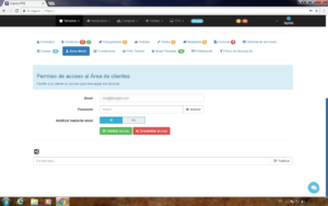 Desde esta opción usted podrá poner un mail y password para dar acceso a su cliente a sus datos. Este le será enviado por email y el cliente podrá acceder para realizar gestiones varias que usted previamente haya autorizado.