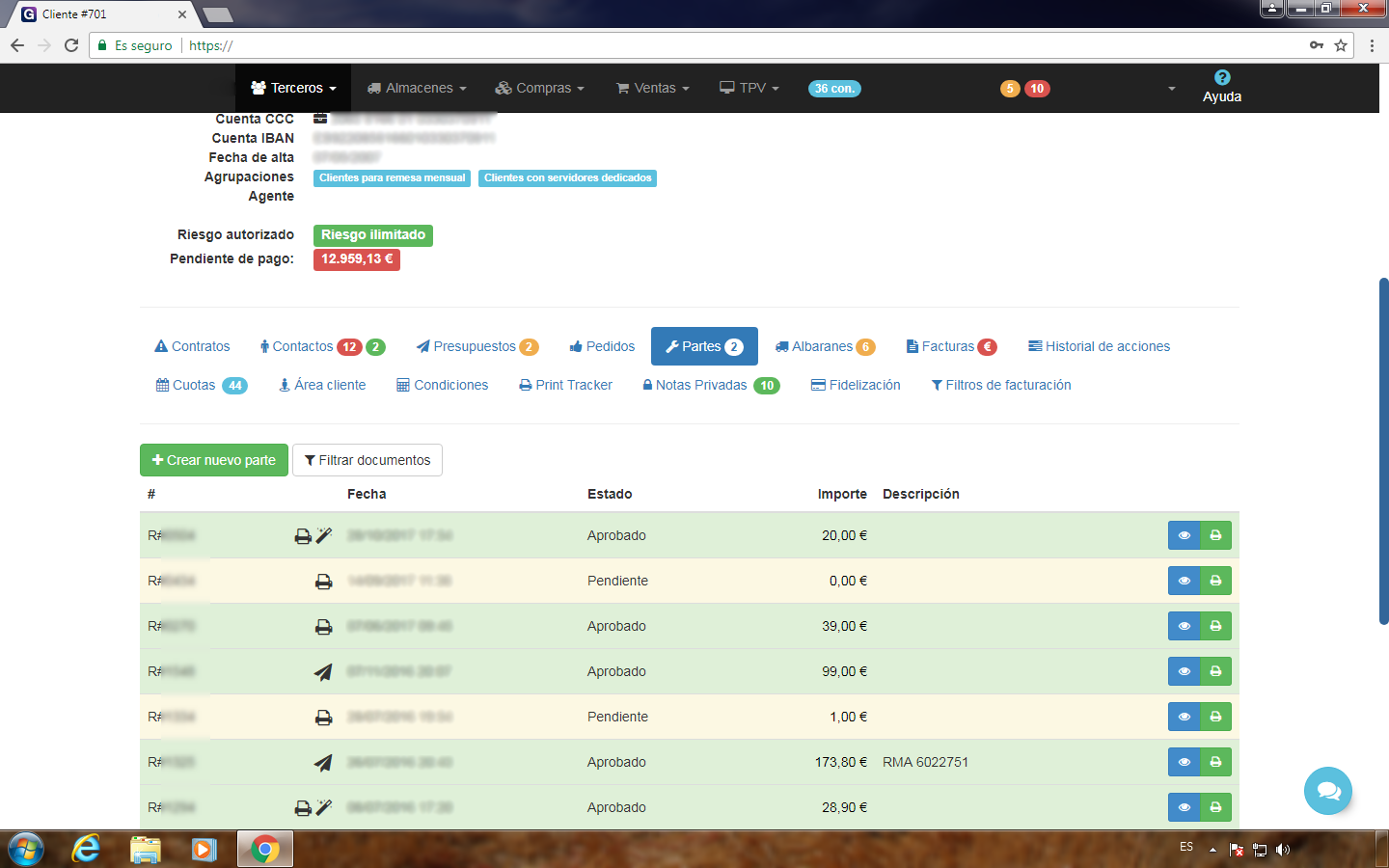 Saber cuantas reparaciones se le hacen a un cliente que tiene mantenimiento es muy importante, que el cliente tenga conocimiento del coste de dicha reparación también.