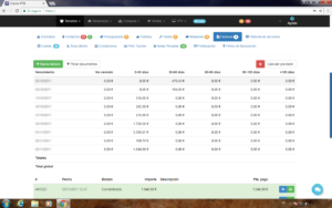 Esta pestaña nos permite ver de una forma clara y cómoda los vencimientos que un cliente mantiene co nuestra empresa disponiendo de los recibos actuales, os que tiene a 30 días, entre 30 y 60 días, 60 y 90 días, 90 y 120 días, y más de 120 días.