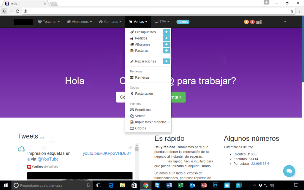 Los globos son pequeños y coloridos redondeles que se muestra por distintos sitios de la aplicación indicándonos, por ejemplo, número de albaranes pendientes de facturar. Si pulsamos sobre el flobo nos llevaría a la visualización de las mismas.