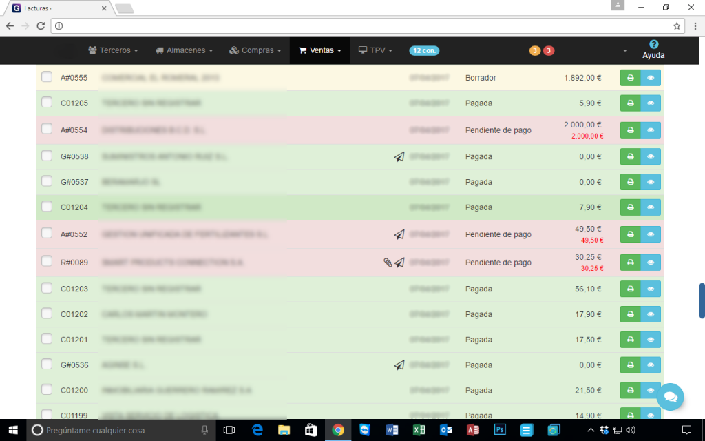 Al igual que en las funciones anteriores podremos consultar y ver el estado de las facturas de nuestro proveedor.