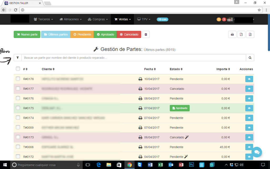 Si te dedicas a la reparación de cualquier material, este módulo te permite controlar las reparaciones pendientes, saber cuanta mano de obra has facturado, imprimir las etiquetas de los partes de trabajo, disponer de una estadística de tipos de reparaciones.