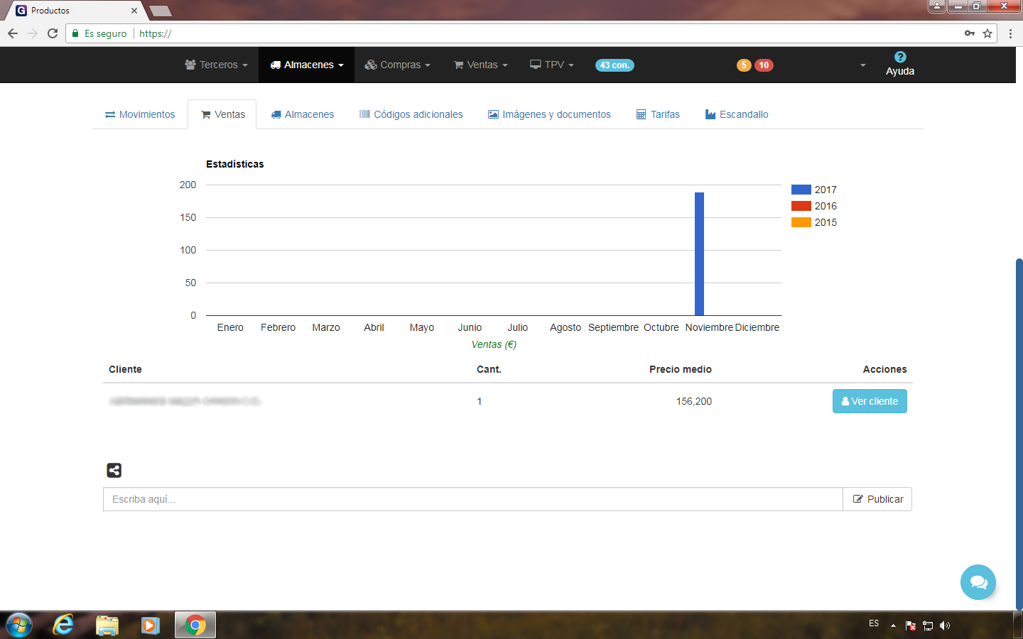 Se muestra en tiempo real una gráfica sobre la evolución de nuestras ventas al cliente.